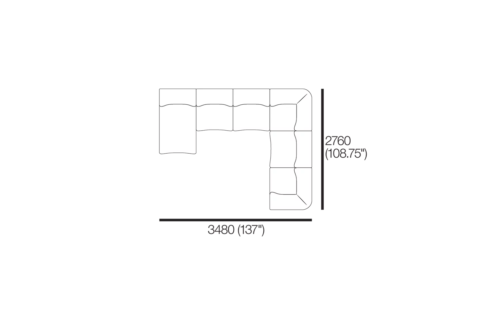 Package includes a chaise, two corner modules, and three chair modules. Seats 6.